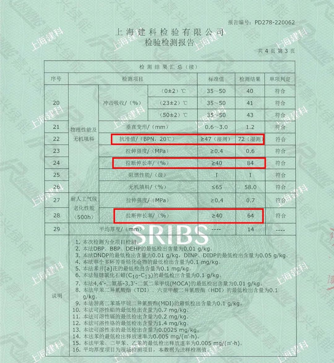 物理性能检测报告数据: